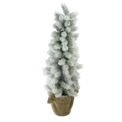 - Potted Slim Profile Flocked Mini Pine Christmas Tree With Berries