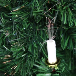 Pre-lit fiber optic tree has a multi-color wheel at base