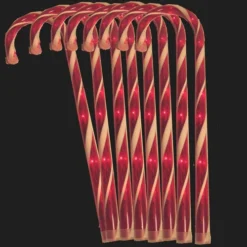 Set Of 8 Red And White Lighted Candy Cane Christmas Lawn Stakes